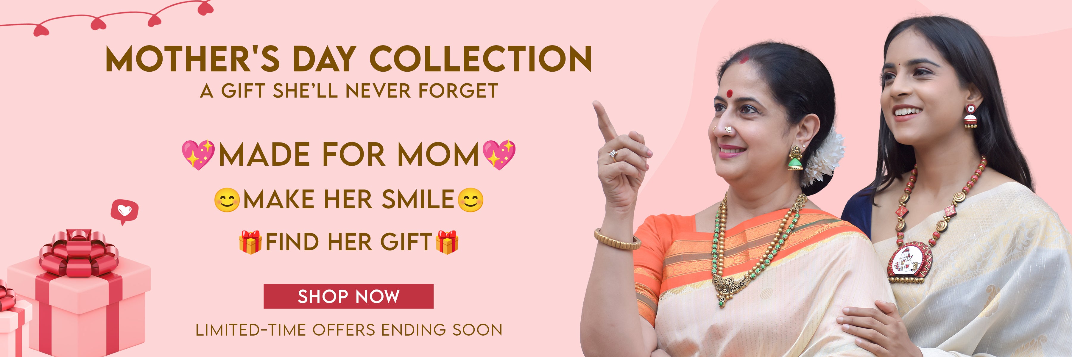 Rose Whisper 🩷 — Minimal Raani Pink Hearts Terracotta Necklace Set
