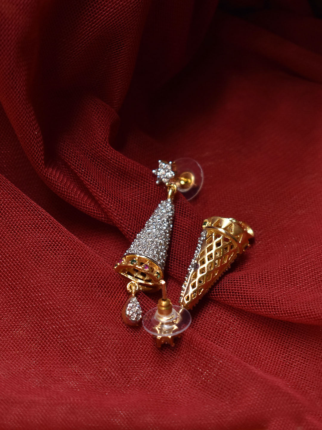 Avismaya High Quality Gold Plated Conical Shape CZ Stones Drop Earring
