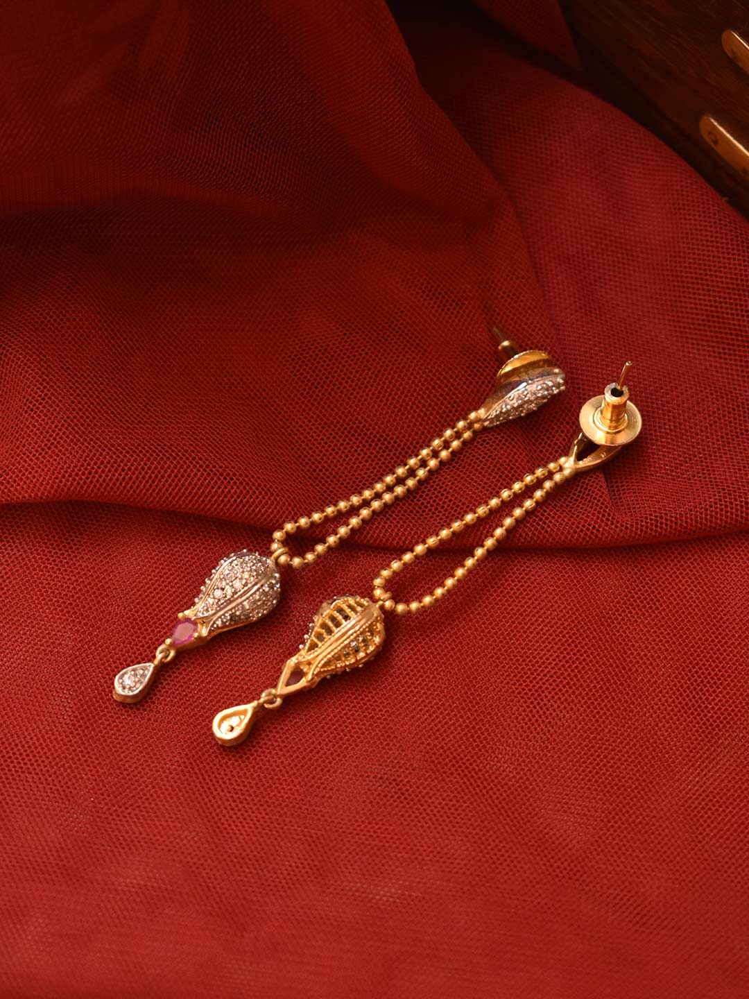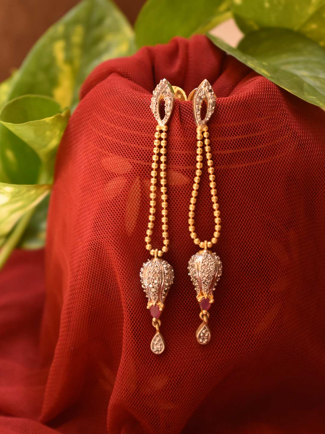 Gold Plated Oval Design Stud Cz Stones Hanging Chains Drop Earring