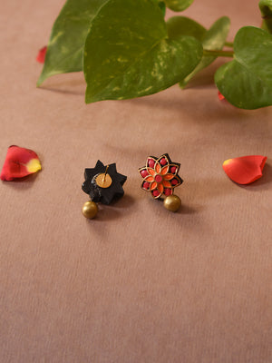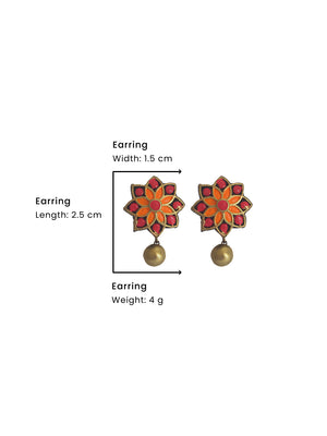 Antique Gold Pink Orange Floral Mandala Work Handmade Terracotta Stud Earrings