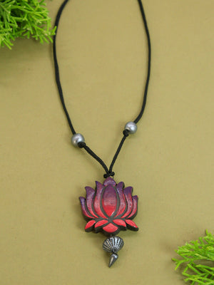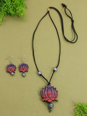 Purple Pink Silver Lotus Design Minimalistic Handmade Terracotta Necklace Set