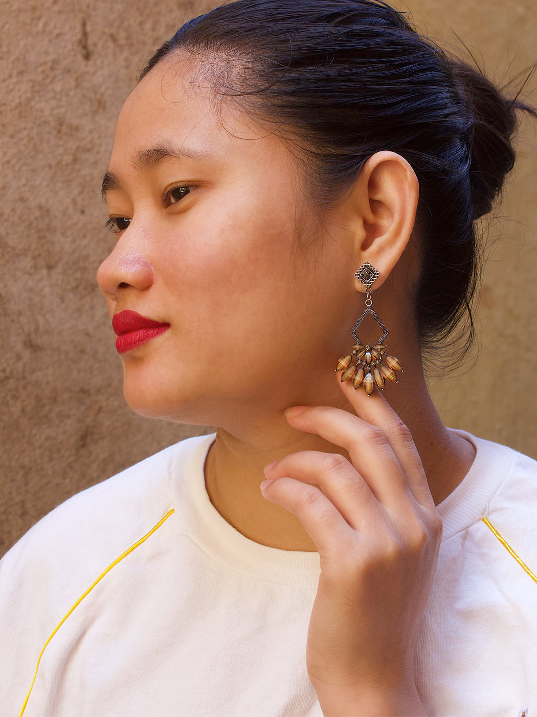 Avismaya Gold Plated Floral Design American Diamond Stone Dangler Earring
