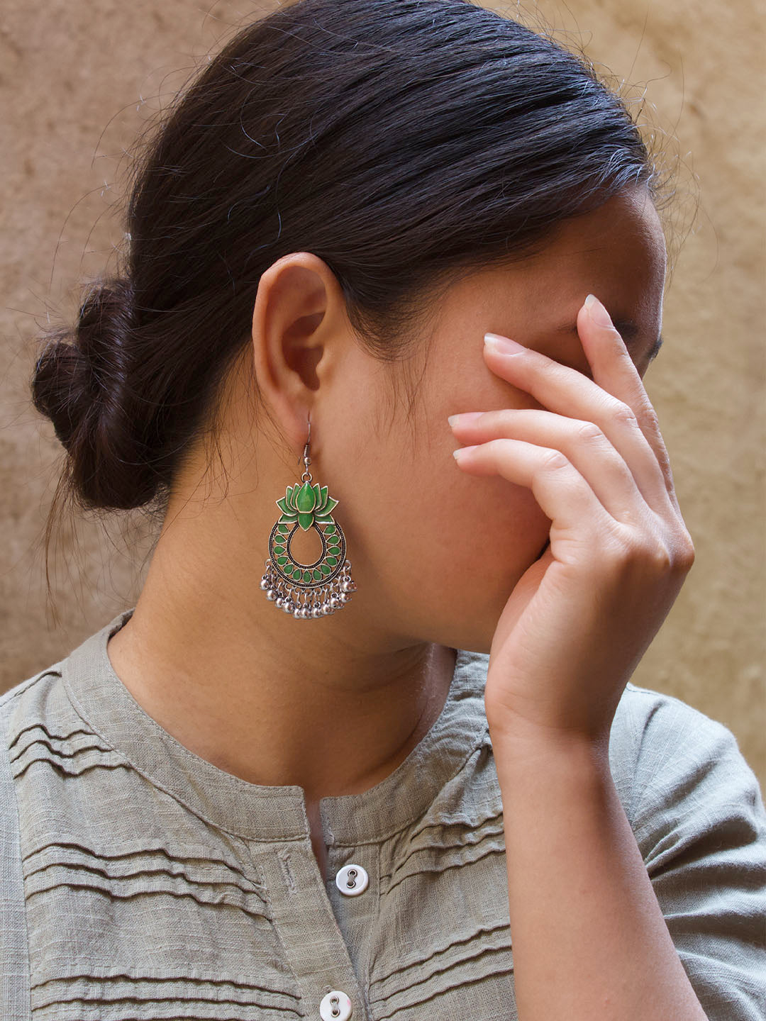 Floral Design Red and Yellow and Blue Dangler Afghani Earring
