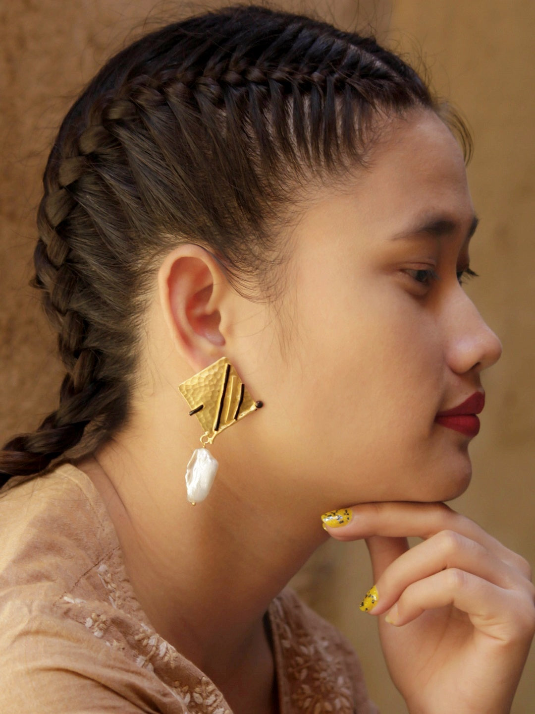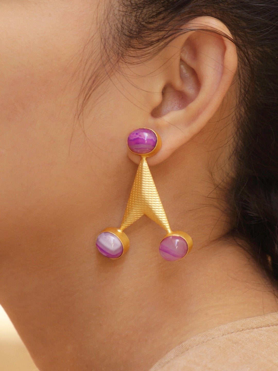 Avismaya Semi Precious Gold Plated Arrow Design Brown Color Druzy Stone Dangler Earring