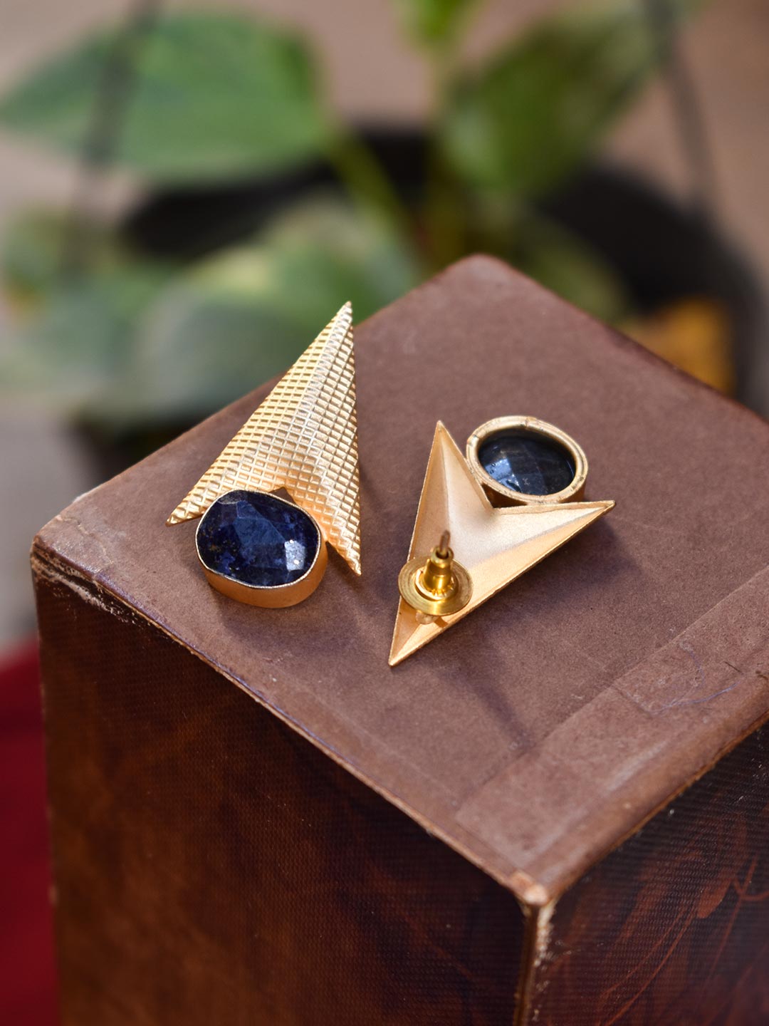 Avismaya Semi Precious Gold Plated Arrow Design Black Color Moonstone Dangler Earring