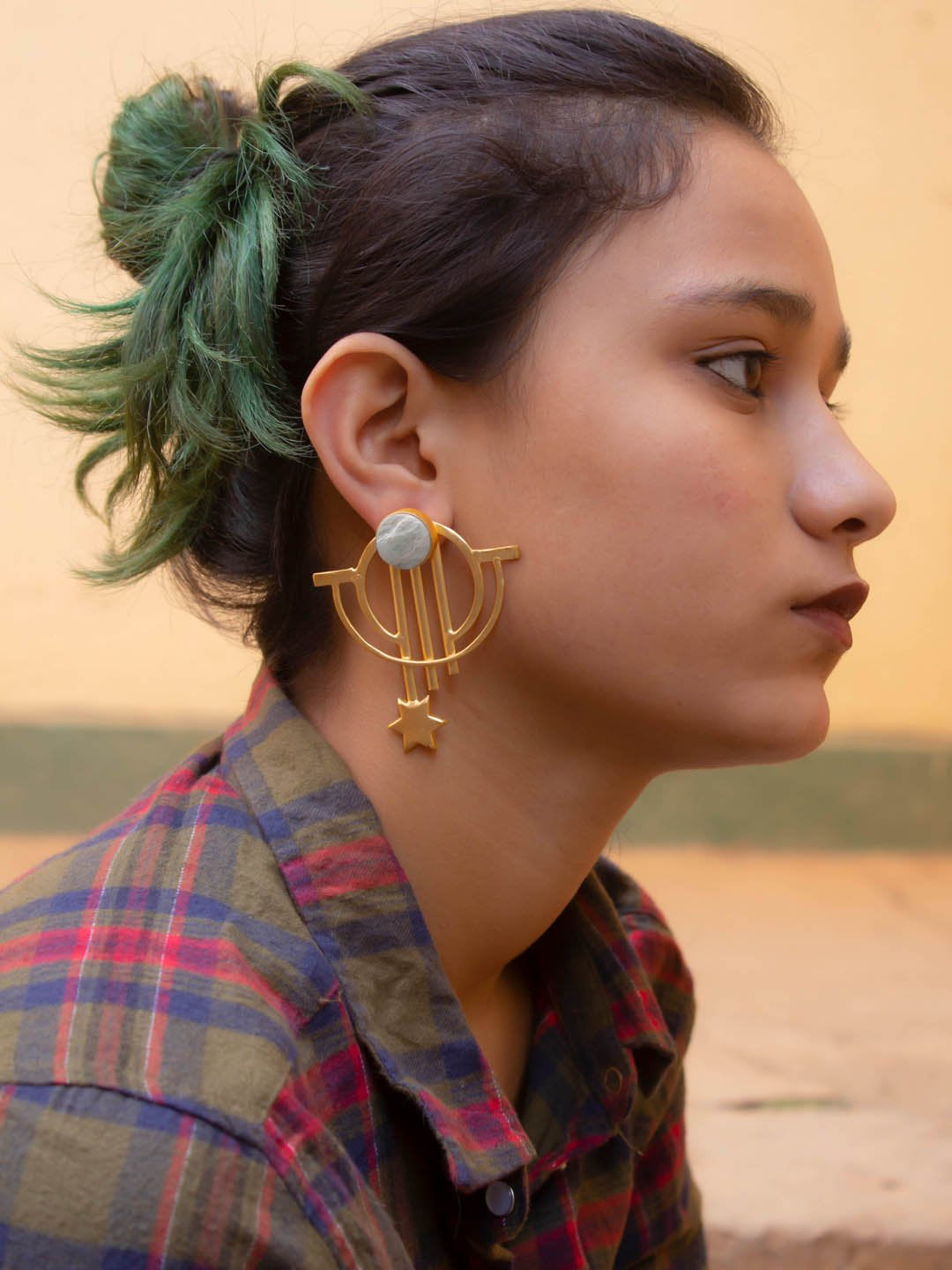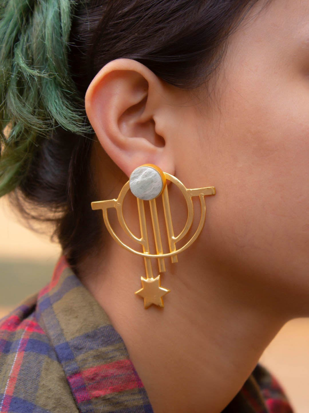 Avismaya Semi Precious Gold Plated Star Design Gray Color Moonstone Dangler Earring