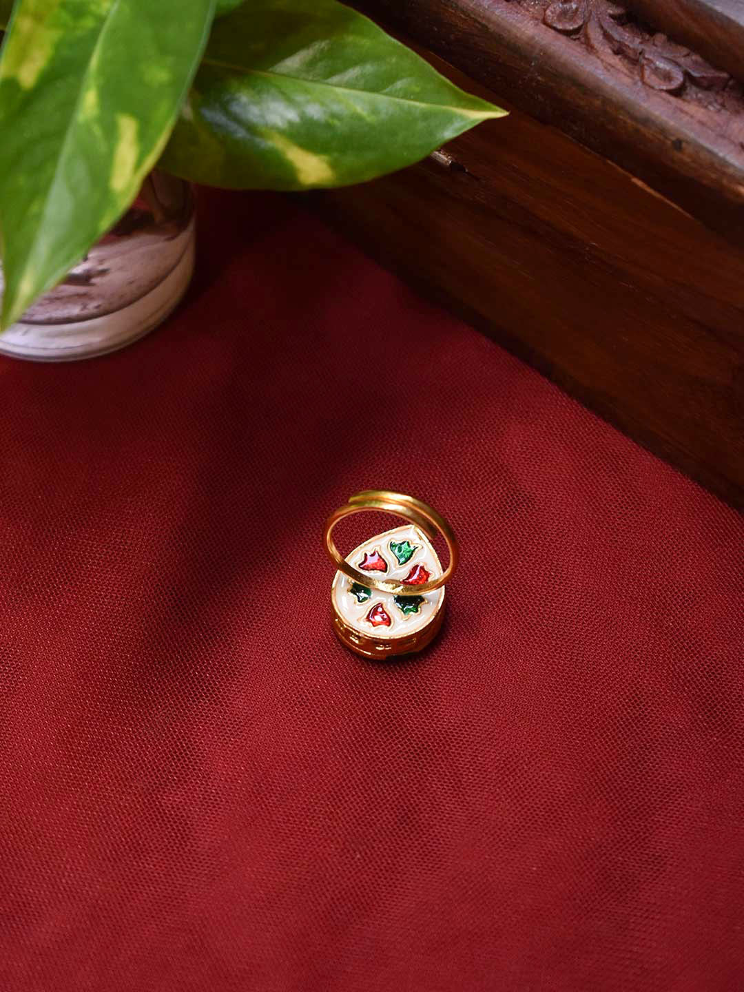 Floral Mandala Design Kundan Pearl Gold Black White Handmade Terracotta Jhumka Earrings
