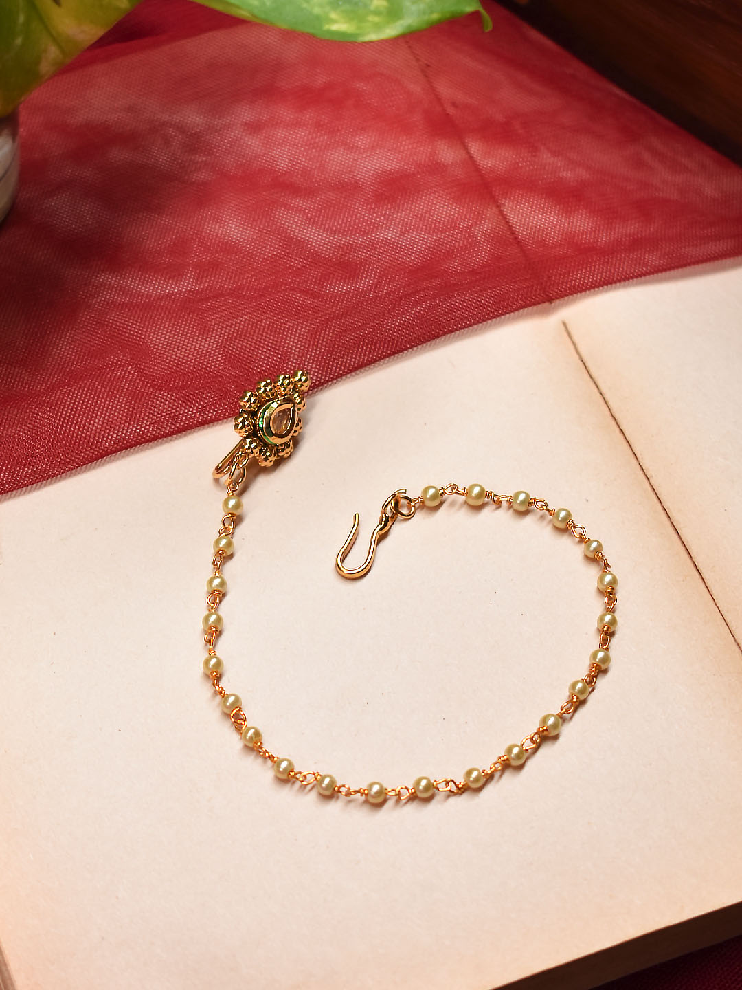 Avismaya Gold Plated Rhombus Shape With Kundan Stones And Pearls Traditional Bangles