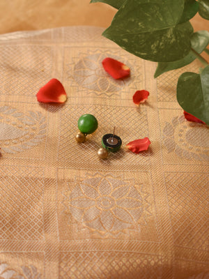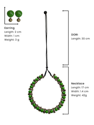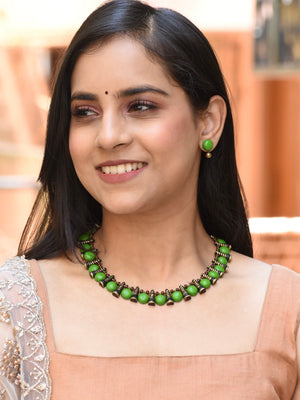 Antique Gold Black Green Circular and Cone Shape Design Handmade Terracotta Necklace Set