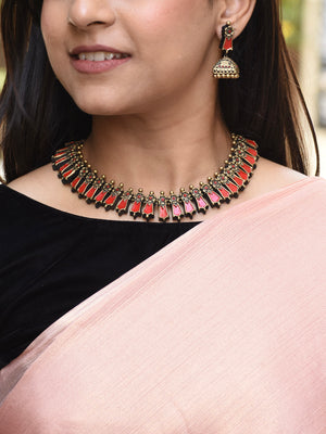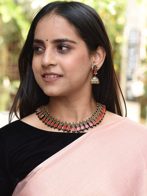 Antique Gold Red Fringe Design Handmade Terracotta Necklace Set