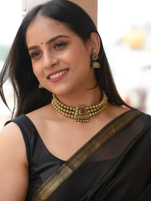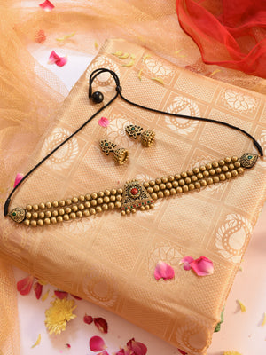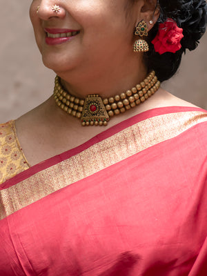Antique Gold Red Green Victorian Choker Style Handmade Terracotta Necklace Set
