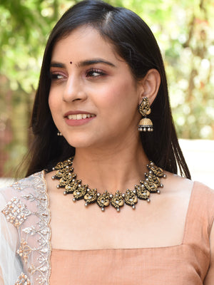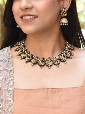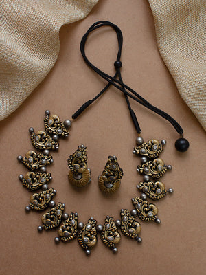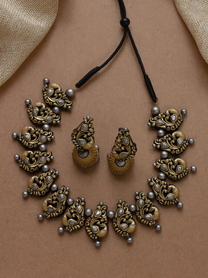 Antique Gold Silver Peacock Design Handmade Terracotta Necklace Set