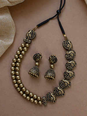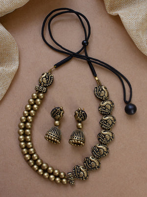 Mayuri - Asymmetric Design Peacock and Two Layered Beads Terracotta Necklace Set