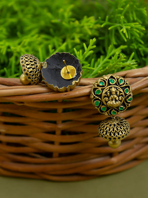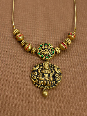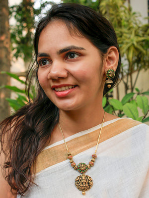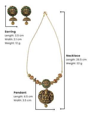 Minimalistc Lakshmi Design Antique Gold Red Green Handmade Terracotta Necklace Set