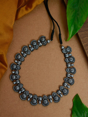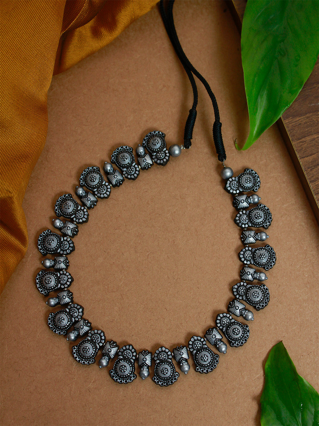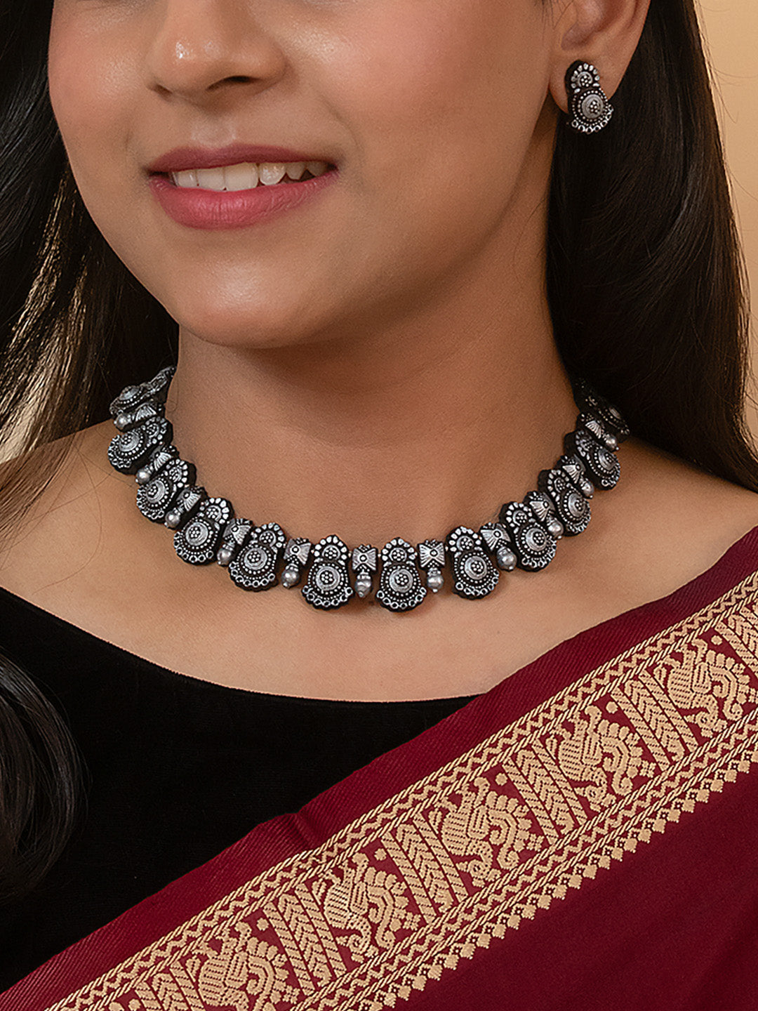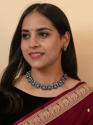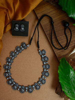 Contemporary Fusion Mandala Art Work Design Antique Silver Handmade Terracotta Necklace Set