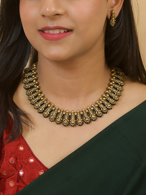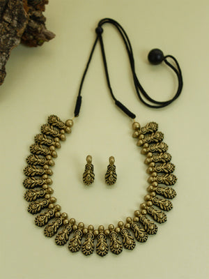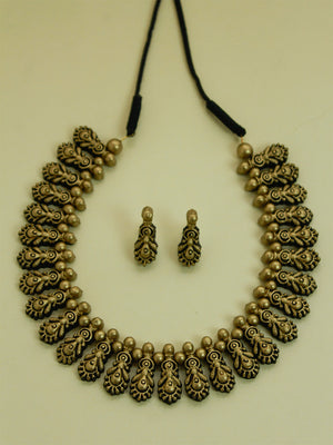Fringe Leaf Design Kolhapuri Style Handmade Terracotta Necklace Set
