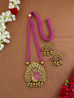 Gold and Purple Pink Design Handmade Terracotta Necklace Set