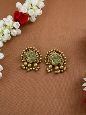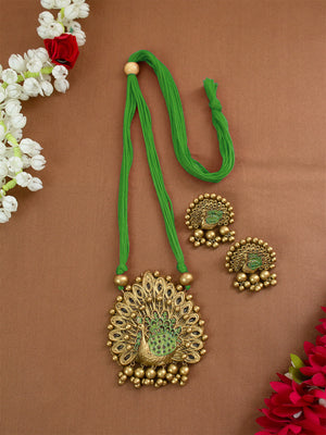 Gold and Light Green Design Handmade Terracotta Necklace Set