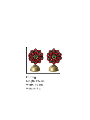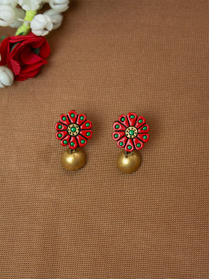 Red and Gold Flower Design Hand-Painted Terracotta Earrings