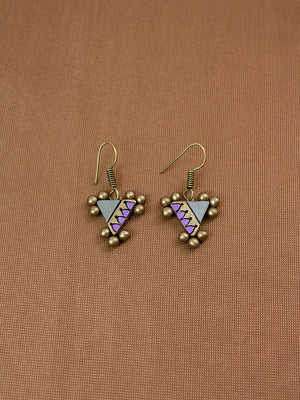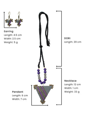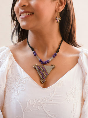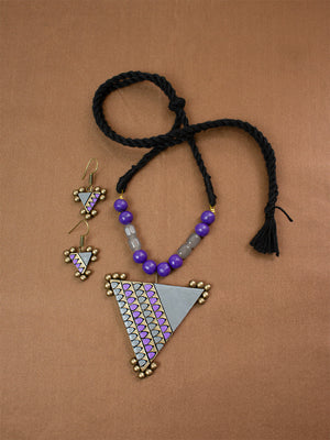 Lavender and Grey Geometric Design Handmade Terracotta Necklace Set