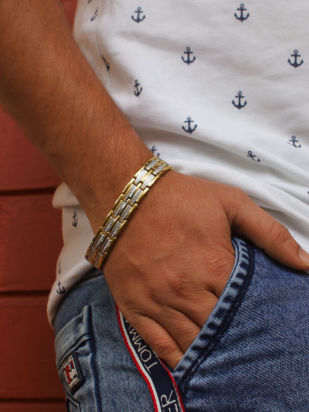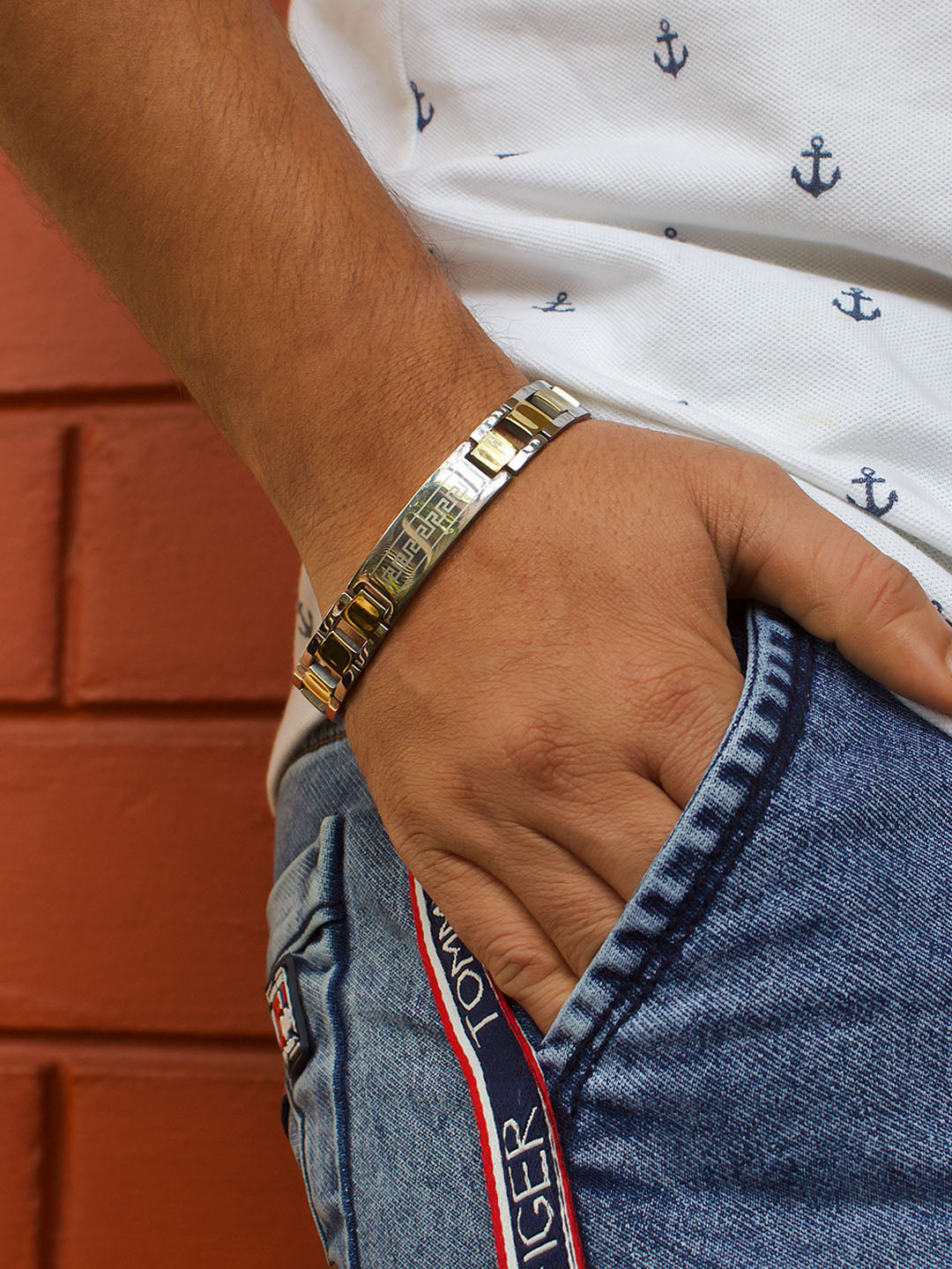 Avismaya Gold And Silver Plated Geometric Design Mens Bracelet