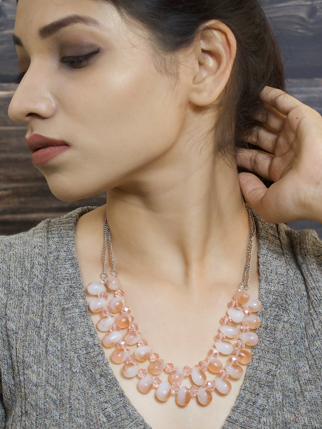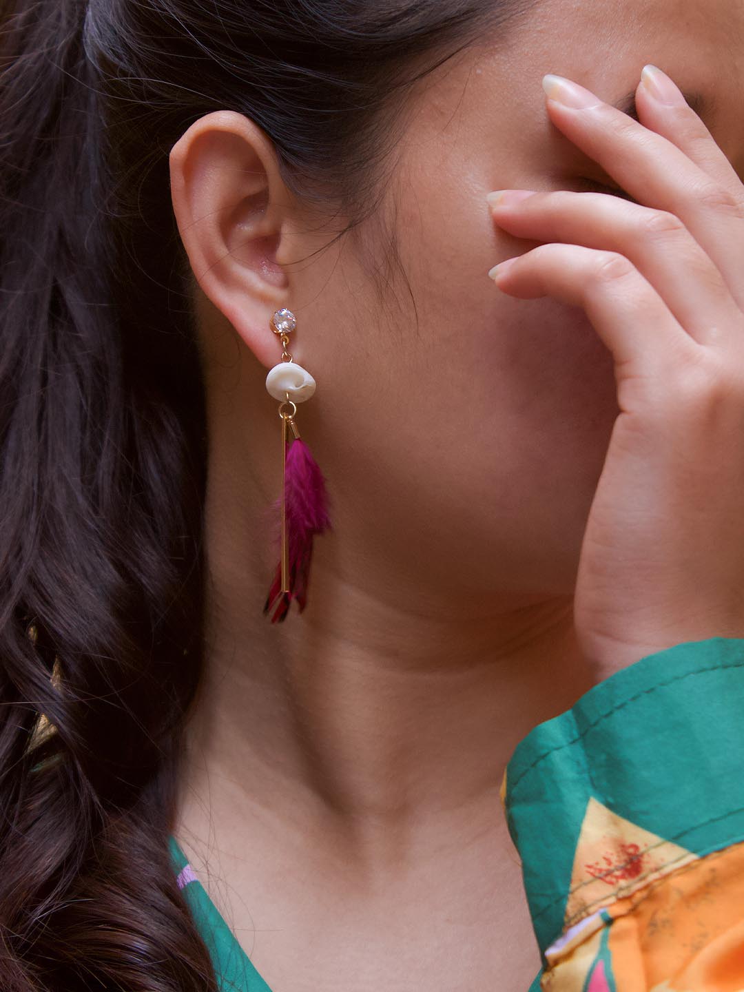 Silver Plated Halfmoon Design With Hanging Pink Color Threads Dangler Earring