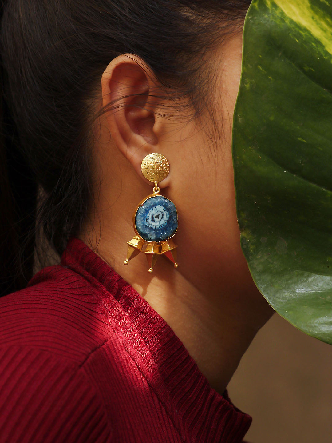 Avismaya Gold Plated Semi-precious solar druzy stone designer earrings