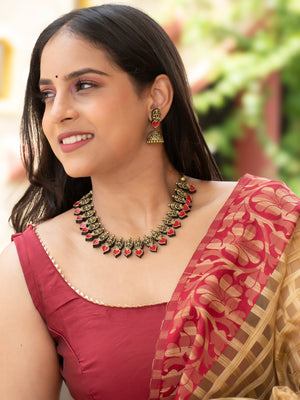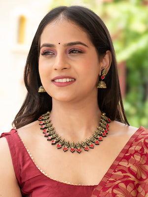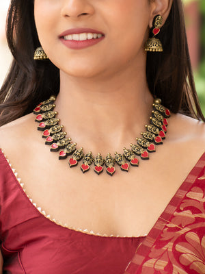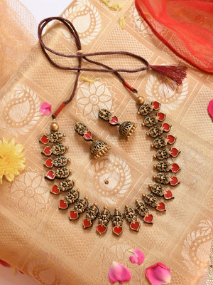 Antique Gold Red Lakshmi Design Temple Terracotta Necklace Set
