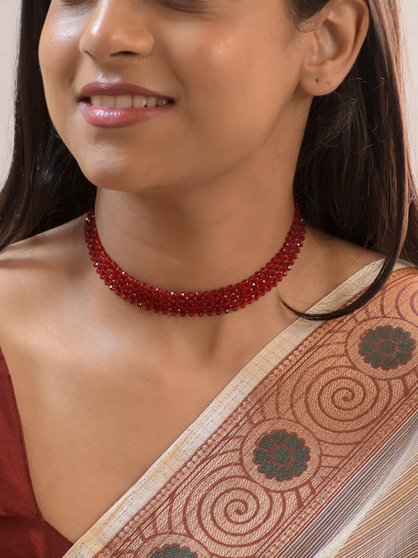 Rakta-Mani Alekhya — Terracotta Ruby Color Charm Choker Set With StudsRakta-Mani Alekhya — Terracotta Ruby Color Charm Choker Set With Studs