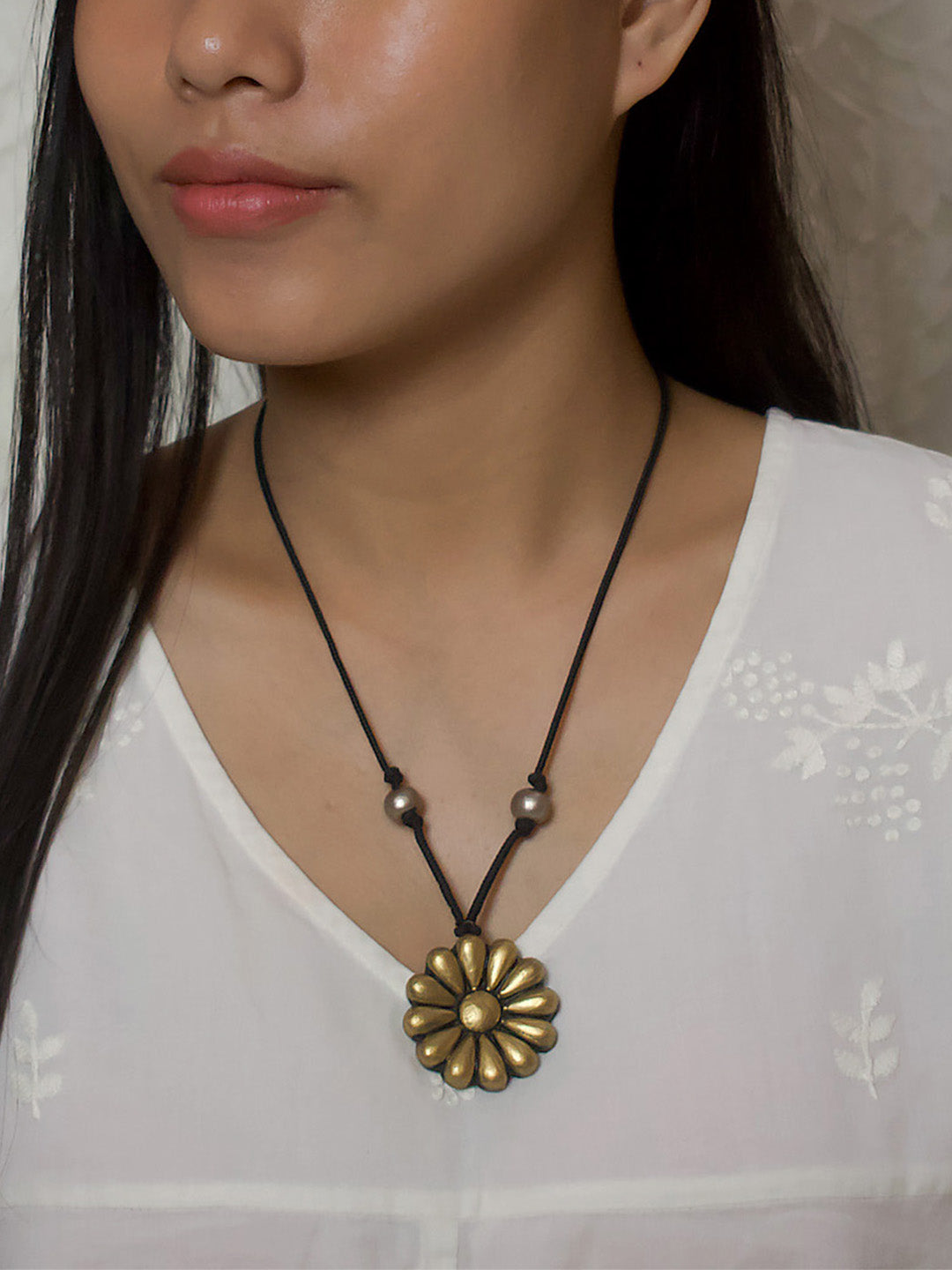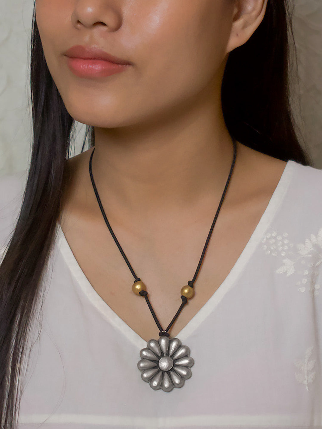 Little Birdie — Black Brown Antique Gold Chirping Bird and Circular Design Contemporary Style Handmade Terracotta Necklace Set