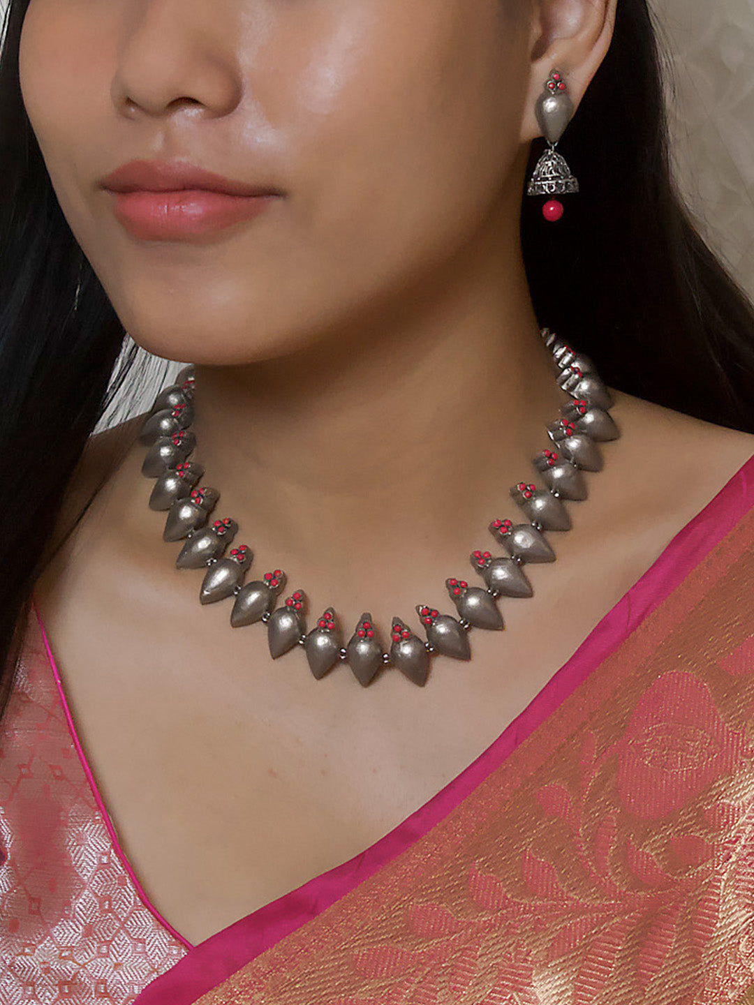 Rakta-Mani Alekhya — Terracotta Ruby Color Charm Choker Set With Studs