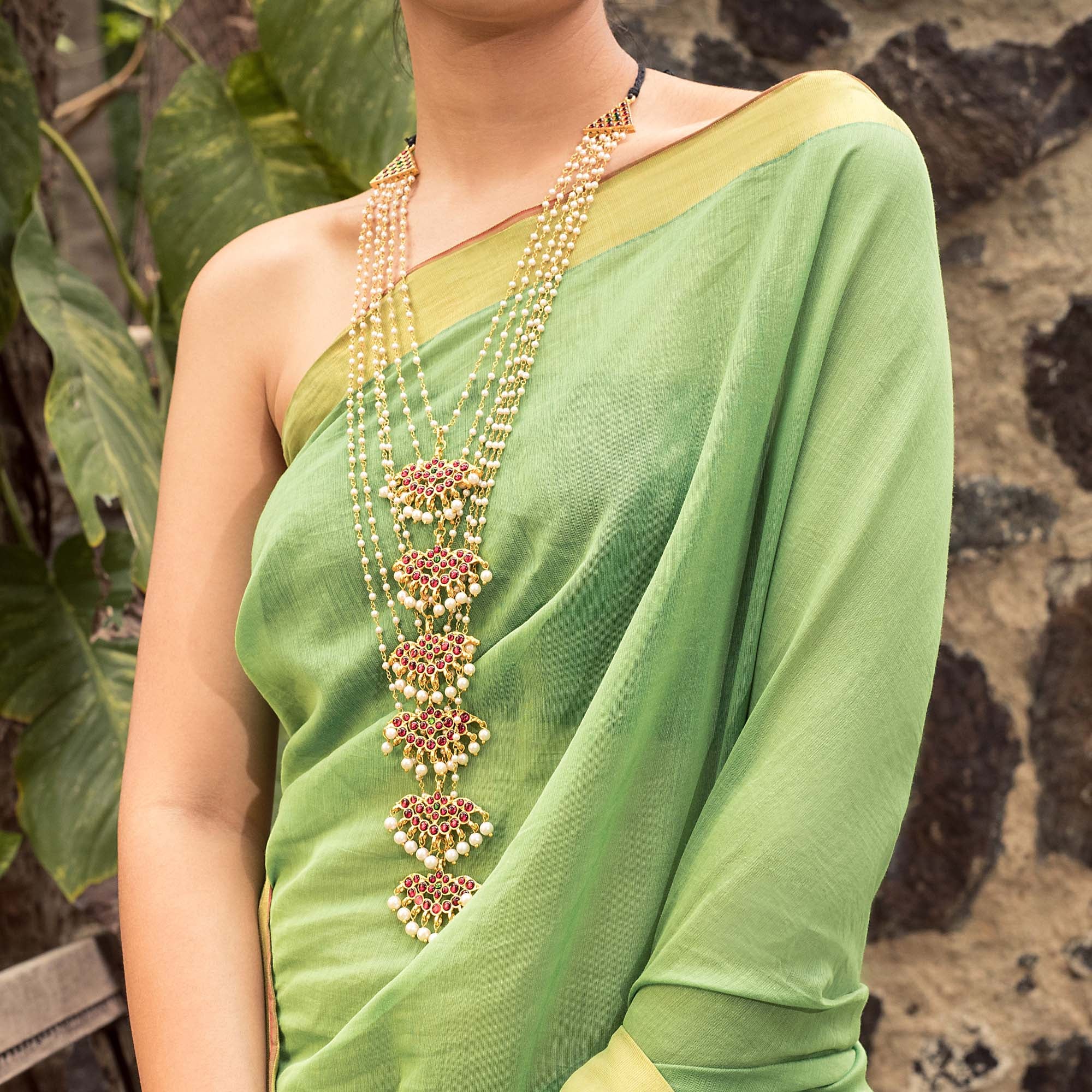 Designer Contemporary 6 Layered Pearl Chain With 6 Layered Pendant Long Necklace