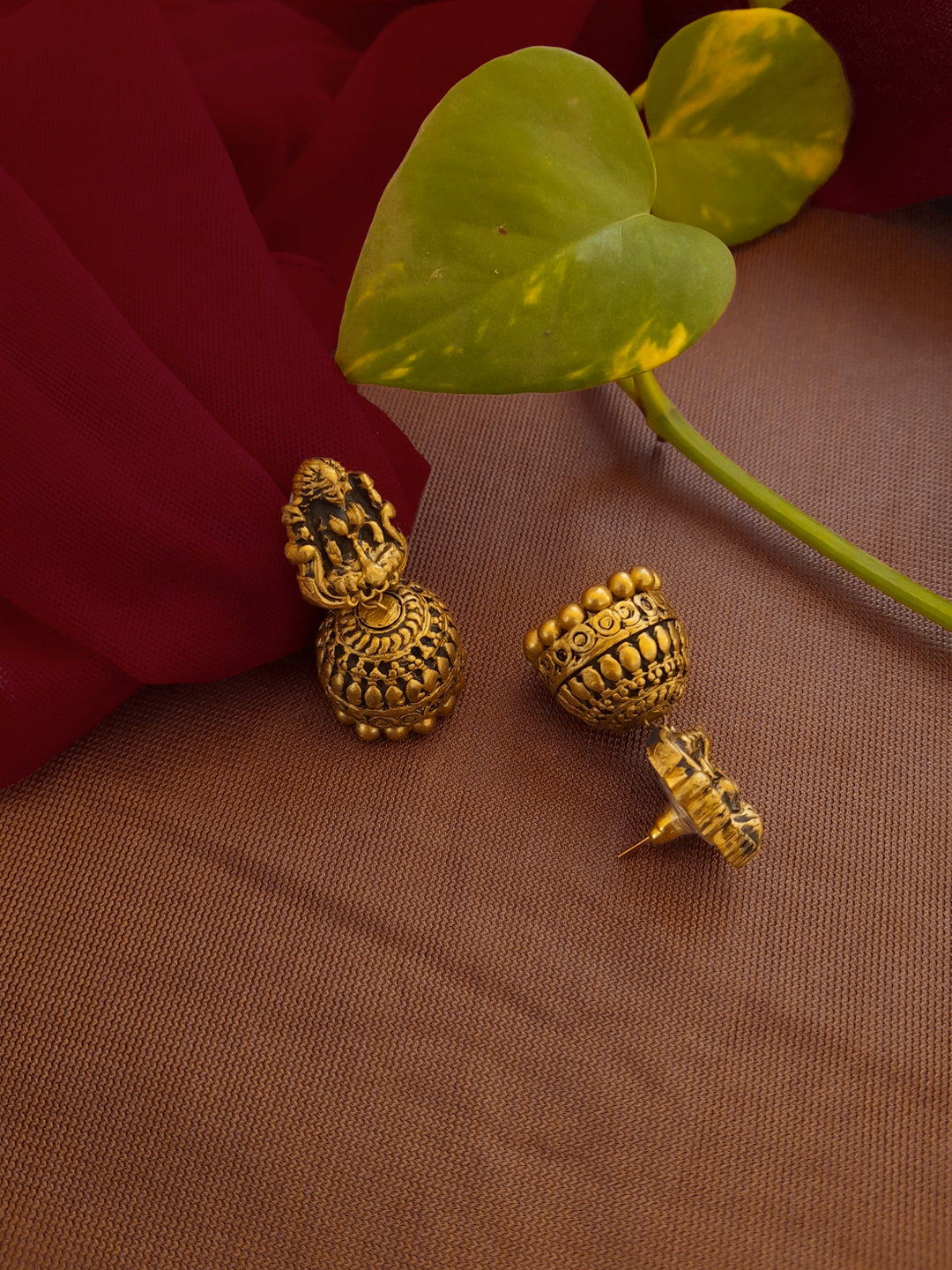 Antique Gold Toned Geometric Design With Pearl Terracotta Choker Necklace Set