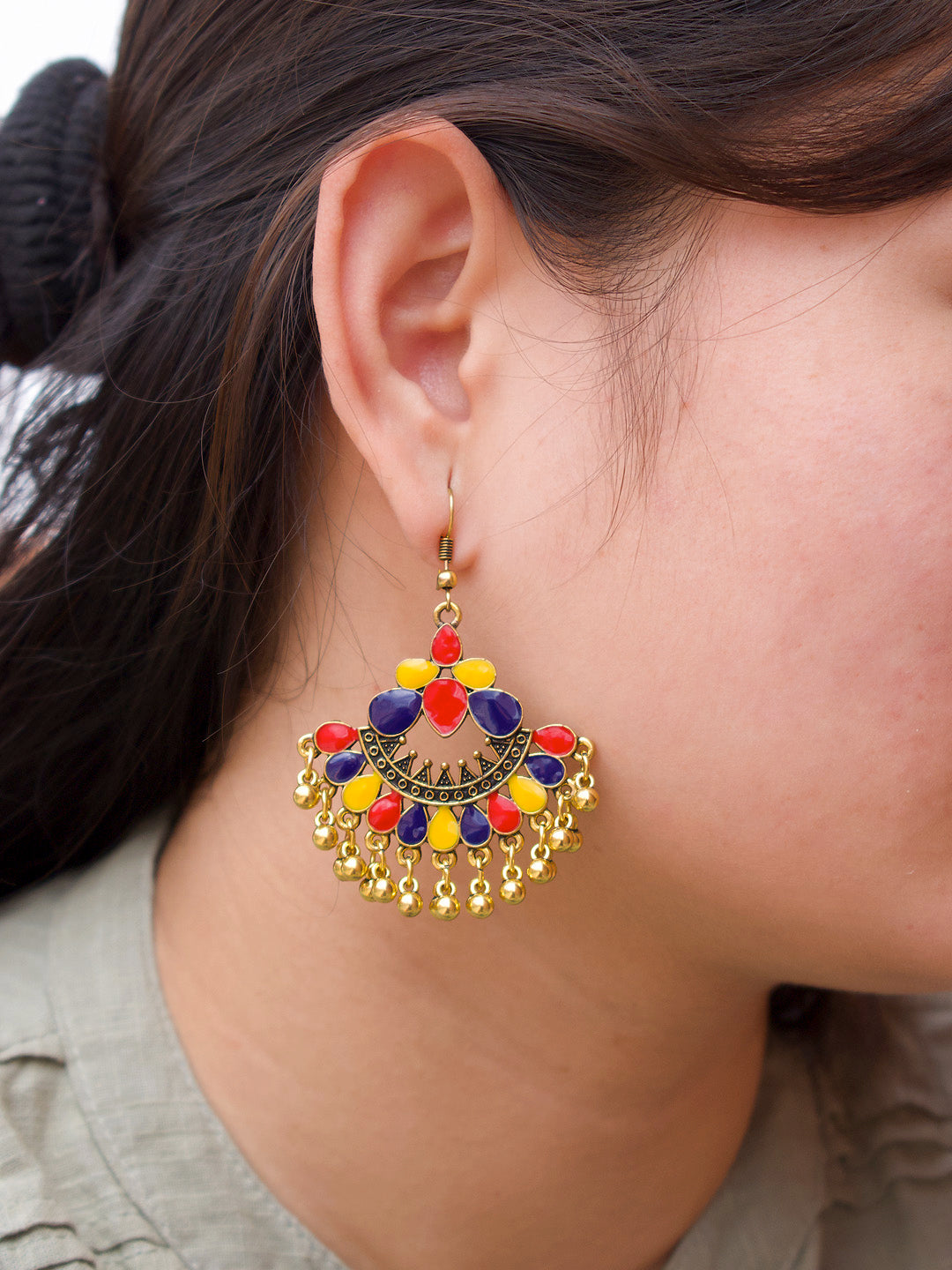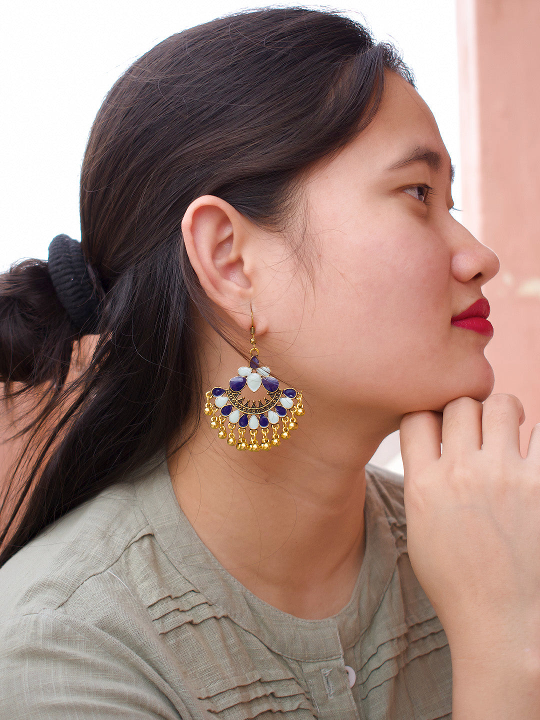Avismaya Gold Plated Geometric Design American Diamond Stone Drop Earring