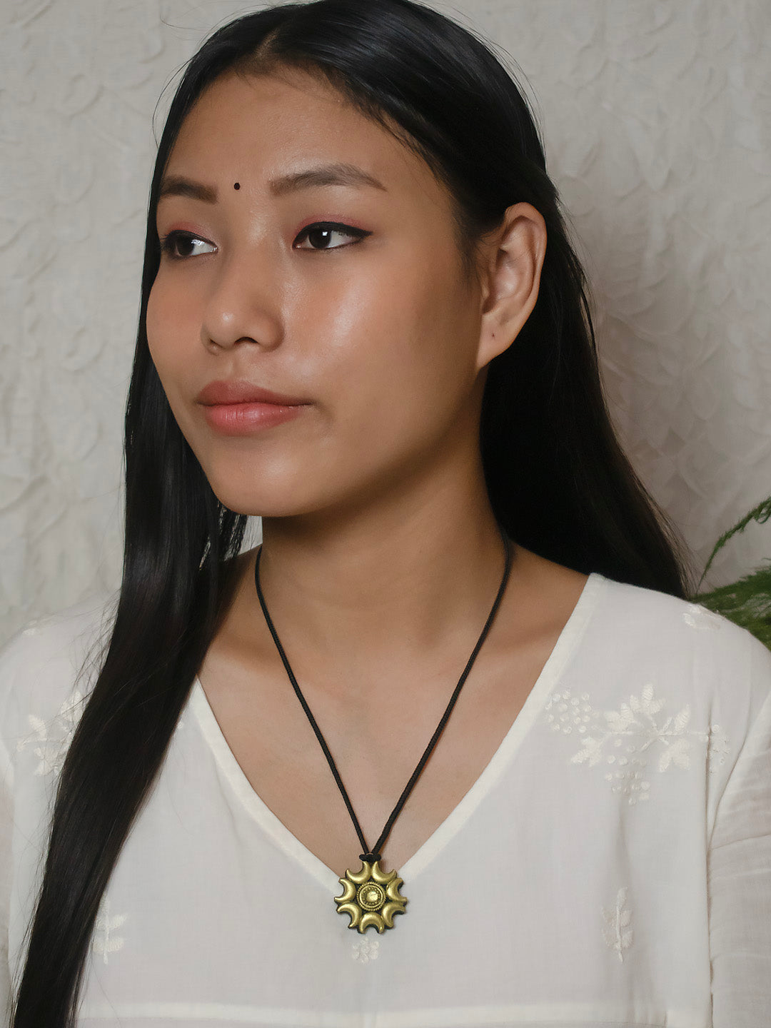Antique Silver Gold Floral Design Pendant Handmade Terracotta Minimalistic Necklace Set