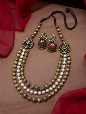 Meghangini — Peacock Design Hand Painted Terracotta Jewellery Set