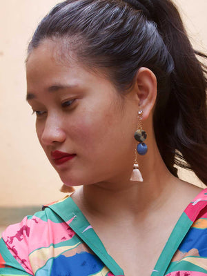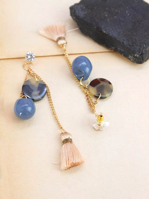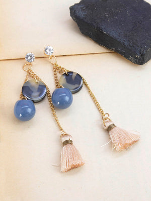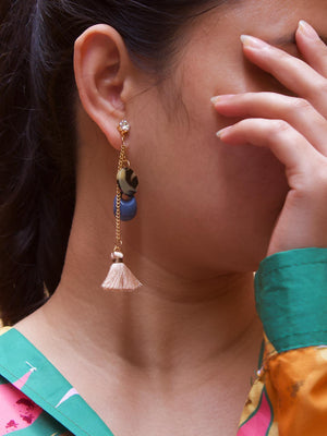 Gold Plated Tassel Design Blue Color Beads Dangler Earring