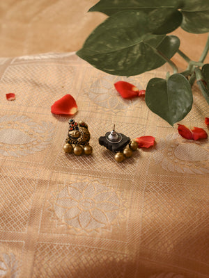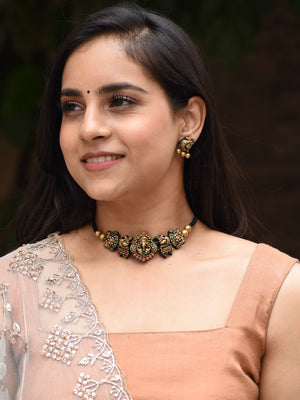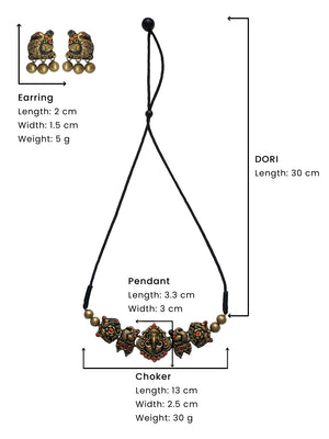 Antique Gold and Orange Ganesha Peacock Element Inspired Handmade Terracotta Choker Necklace Set