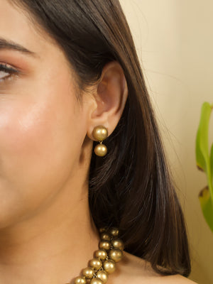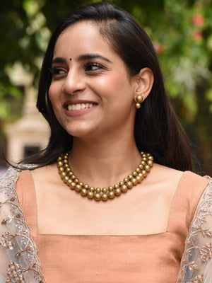 Antique Gold Circular Pattern Beaded Handmade Terracotta Necklace Set
