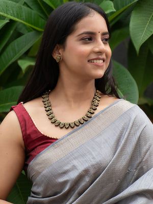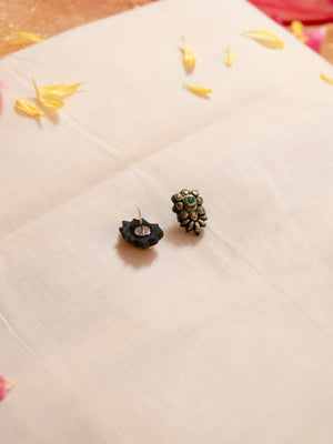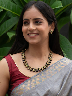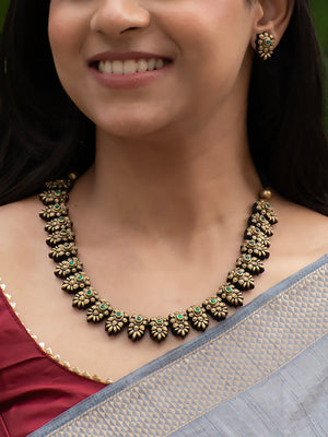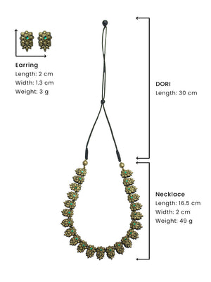 Antique Gold Floral and Leaf Design Green Kundan Handmade Terracotta Necklace Set