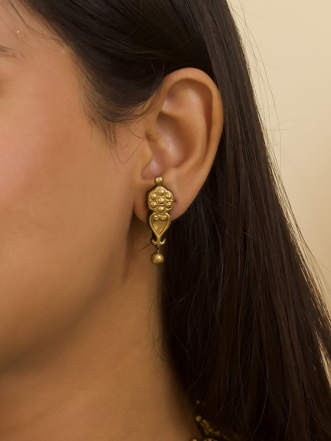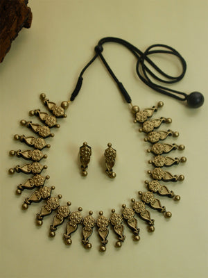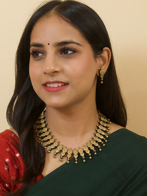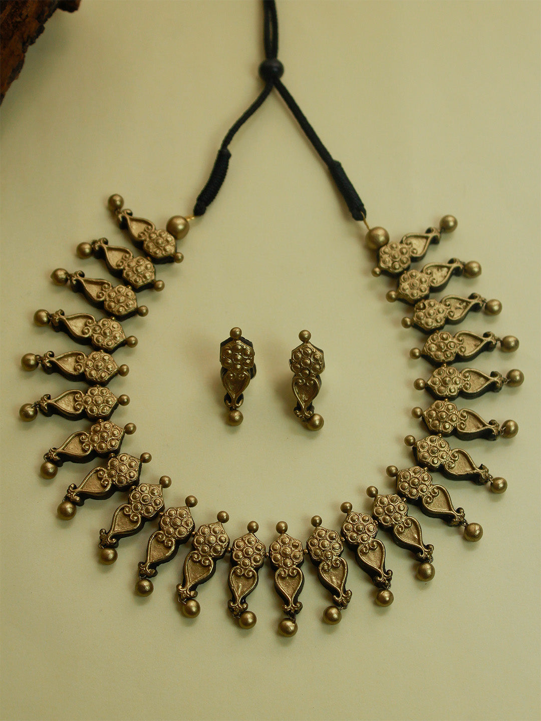 Antique Gold Flower Leaf Fringe Design Handmade Terracotta Necklace Set