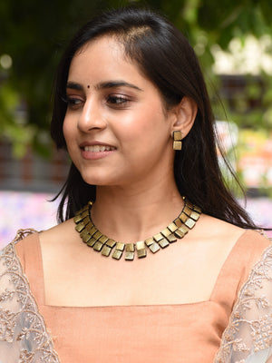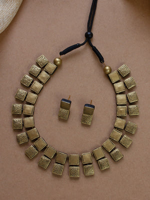 Antique Gold Geometric Square Box Design Handmade Terracotta Necklace Set