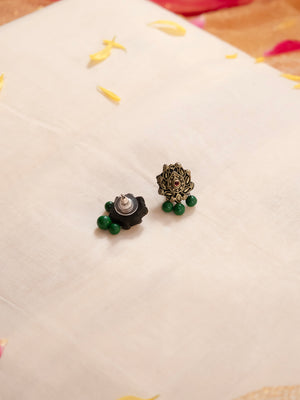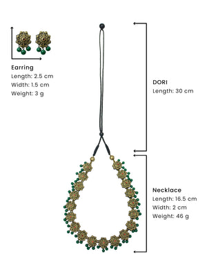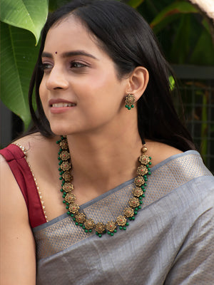 Padmavati - Antique Gold Green floral drops Handmade Terracotta Necklace Set