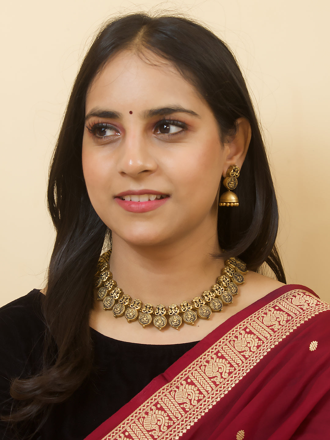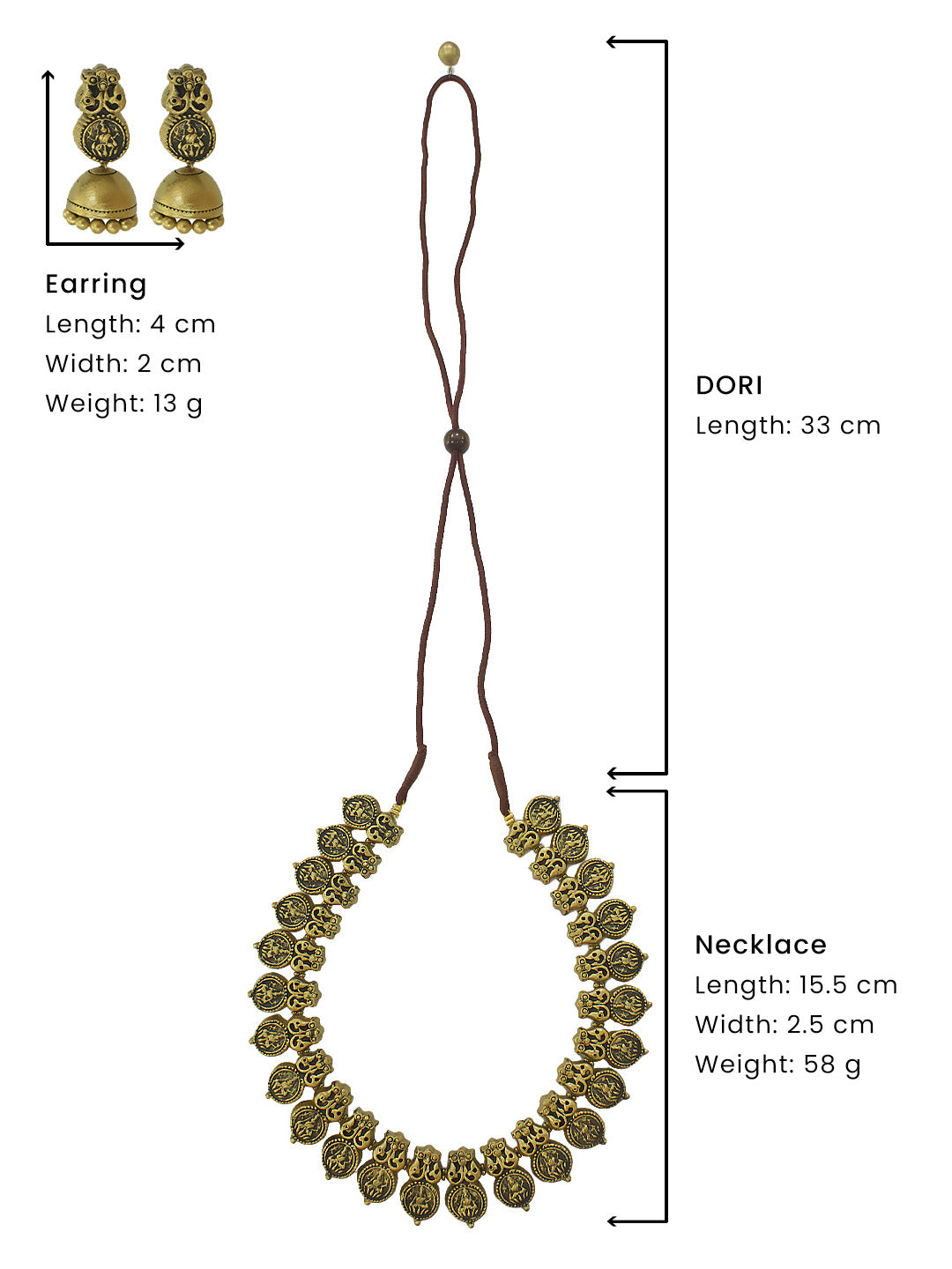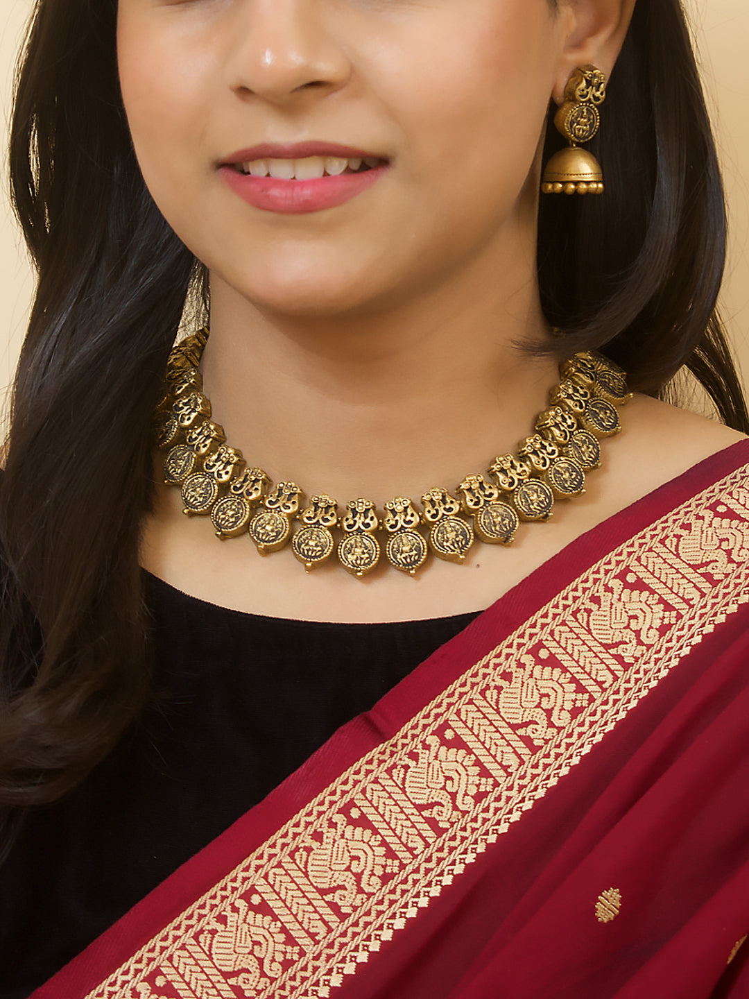 Antique Gold Lakshmi Coin Design Trishul Handmade Terracotta Temple Necklace Set