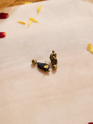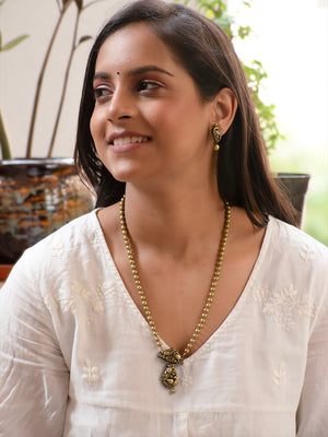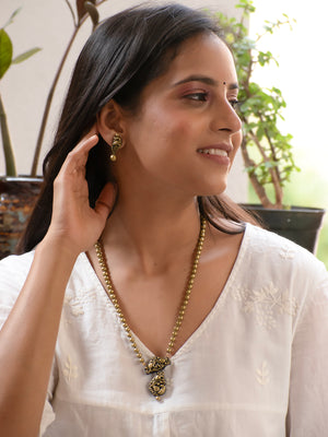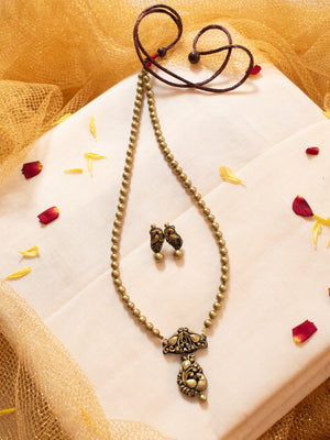 Antique Gold Minimalistic Peacock Design Mala Handmade Terracotta Necklace Set