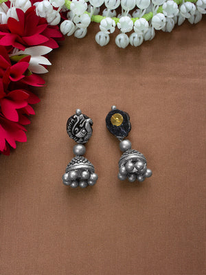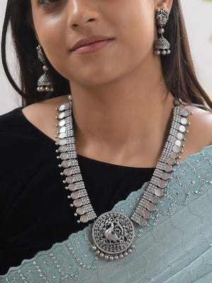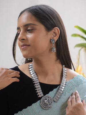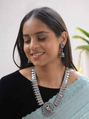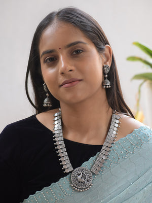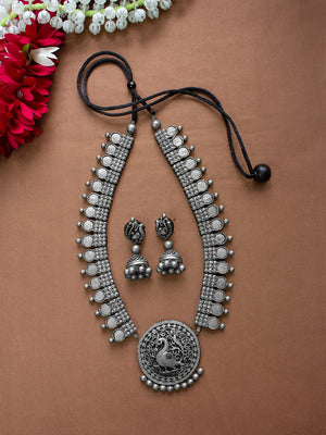 Silver Peacock Coin Design Handmade Terracotta Necklace Set