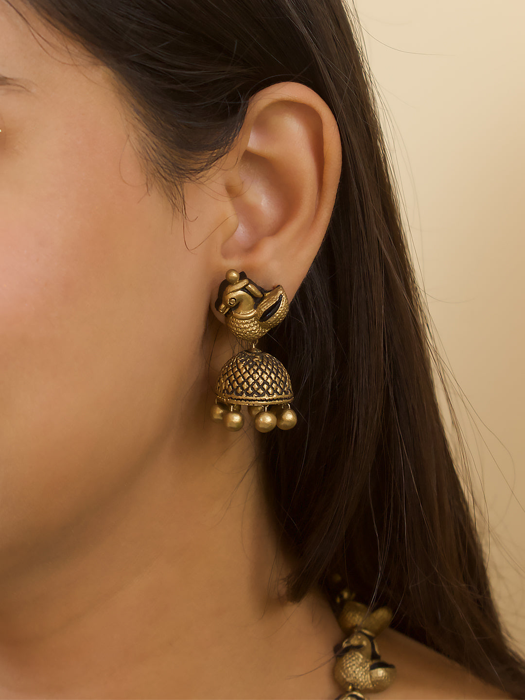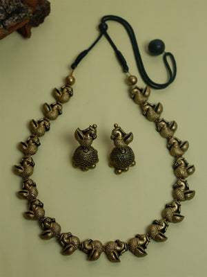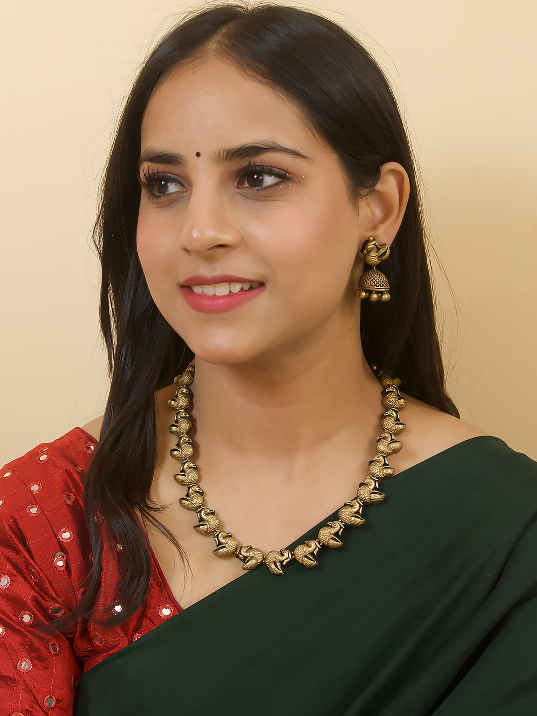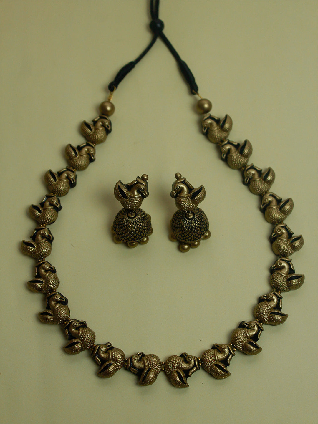 Antique Gold Peacock Design Handmade Terracotta Necklace Set
