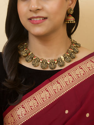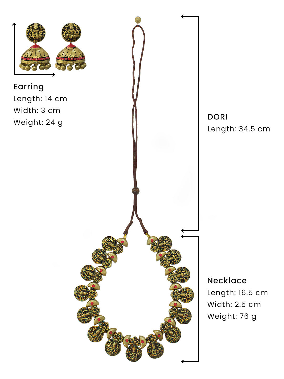 Antique Gold Pink Lakshmi Coin Floral Design Handmade Terracotta Necklace Set