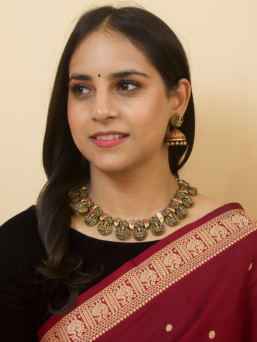 Please ensure you preserve the terracotta jewelry inside the foam sheet in the plastic box given by Jumkey. You can wipe it off with a dry cloth if there is any sweat or dust on the terracotta jewelry. Always ensure terracotta jewelry is the last thing to wear and the first thing to remove when you’re back from a function or event. Keep the terracotta jewelry away from perfume and chemicals (cosmetics). Ensure you apply your makeup, foundation, cosmetics, perfume first and then wear the terracotta jewelry in the end. In short, terracotta jewellery should be the last thing to be worn and the first thing to be removed.