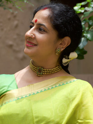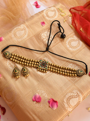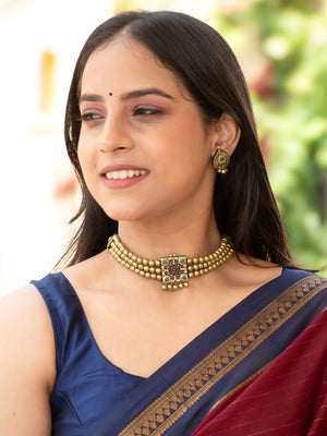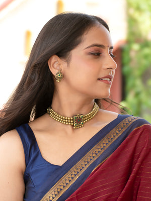 Antique Gold Red Green Square Pendant Victorian Choker Handmade Terracotta Necklace Set